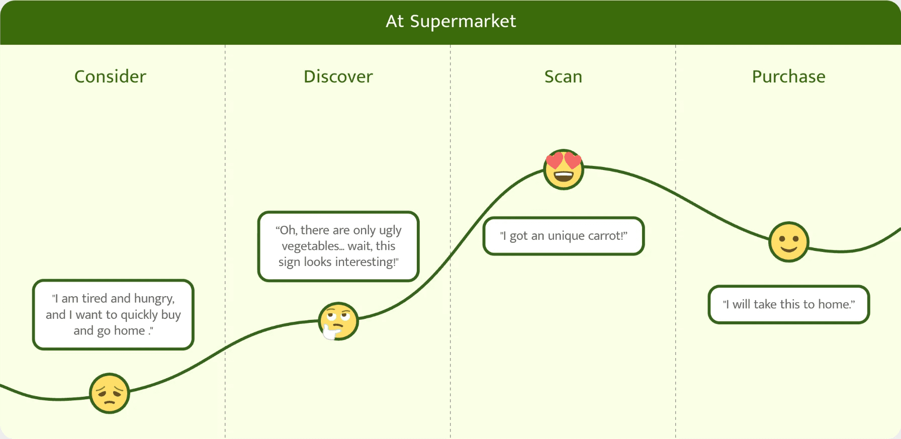 Explored users’ grocery shopping habits and identified key pain points related to ugly veggie